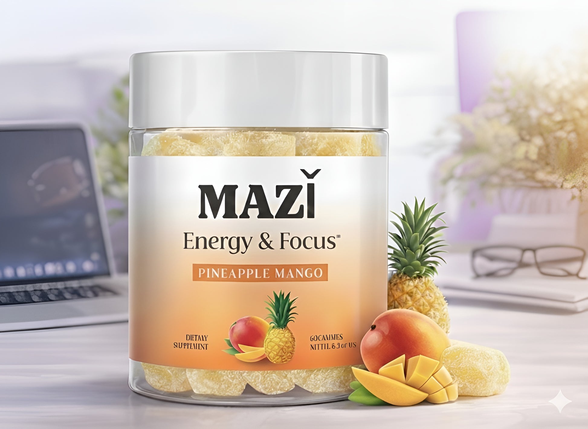 MAZI is a premium energy gummy designed to give you a clean, focused boost without the crash. Each gummy is powered by natural caffeine from green tea, L-Theanine, B vitamins, and CoQ10—made to support both your mind and body.